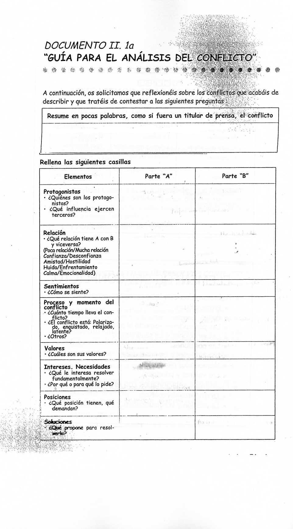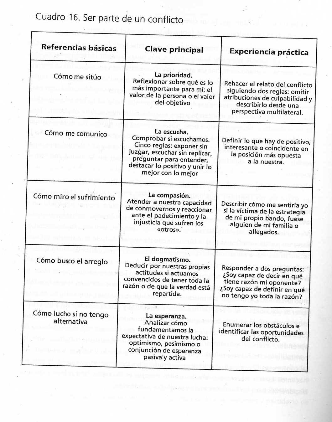 El documento es sólo una tabla resumen de lo que se cuenta en el libro Ser humano en los conflictos de Jonan Fernández.