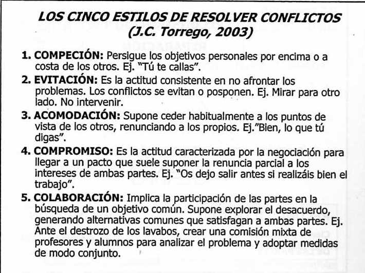 Este apartado trata acerca de los distintos conflictos que pueden tener lugar en el aula y de las diversas formas que existen para encontrarles solución.